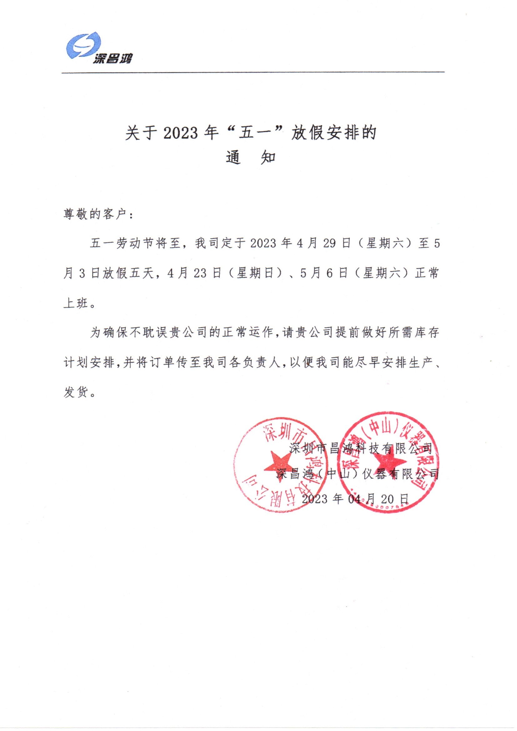 關(guān)于2023年“五一”勞動(dòng)節(jié)放假安排的通知