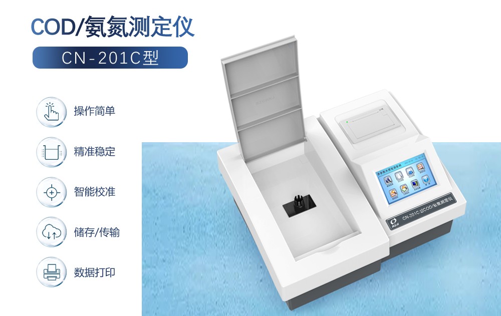 CN-201C型 COD、氨氮測定儀可以直接測定水樣中COD、氨氮的濃度。COD為快速消解光學(xué)法;氨氮采用納氏試劑法。