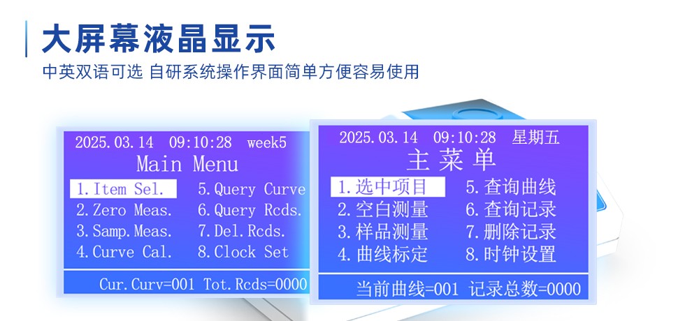 ● LCD大屏幕中文菜單式操作,方便直觀。