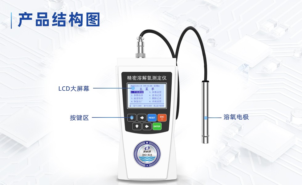 DO-810型便攜式溶氧儀采用超低功耗單片機(jī)測量和控制,采用熒光法測量。具有穩(wěn)定可靠、操作簡單方便等優(yōu)點;該儀器能以兩種溶解氧含量表示單位指示測定結(jié)果,即氧濃度(mg/L)和氧的飽和百分含量(%),此外還同時對被測介質(zhì)的溫度(℃)進(jìn)行測量顯示。